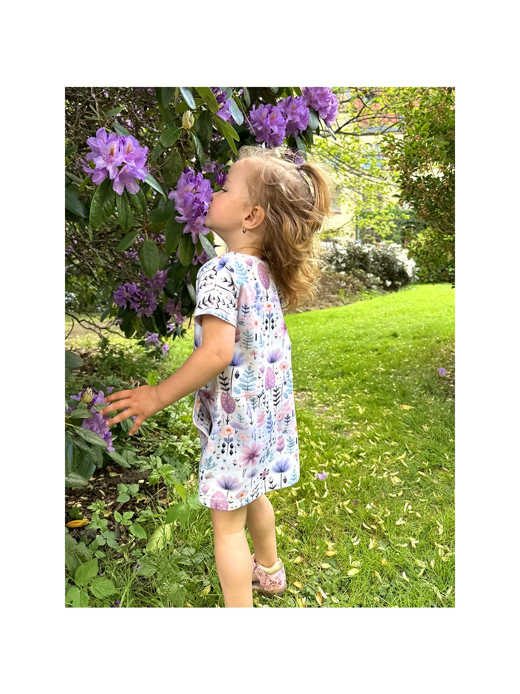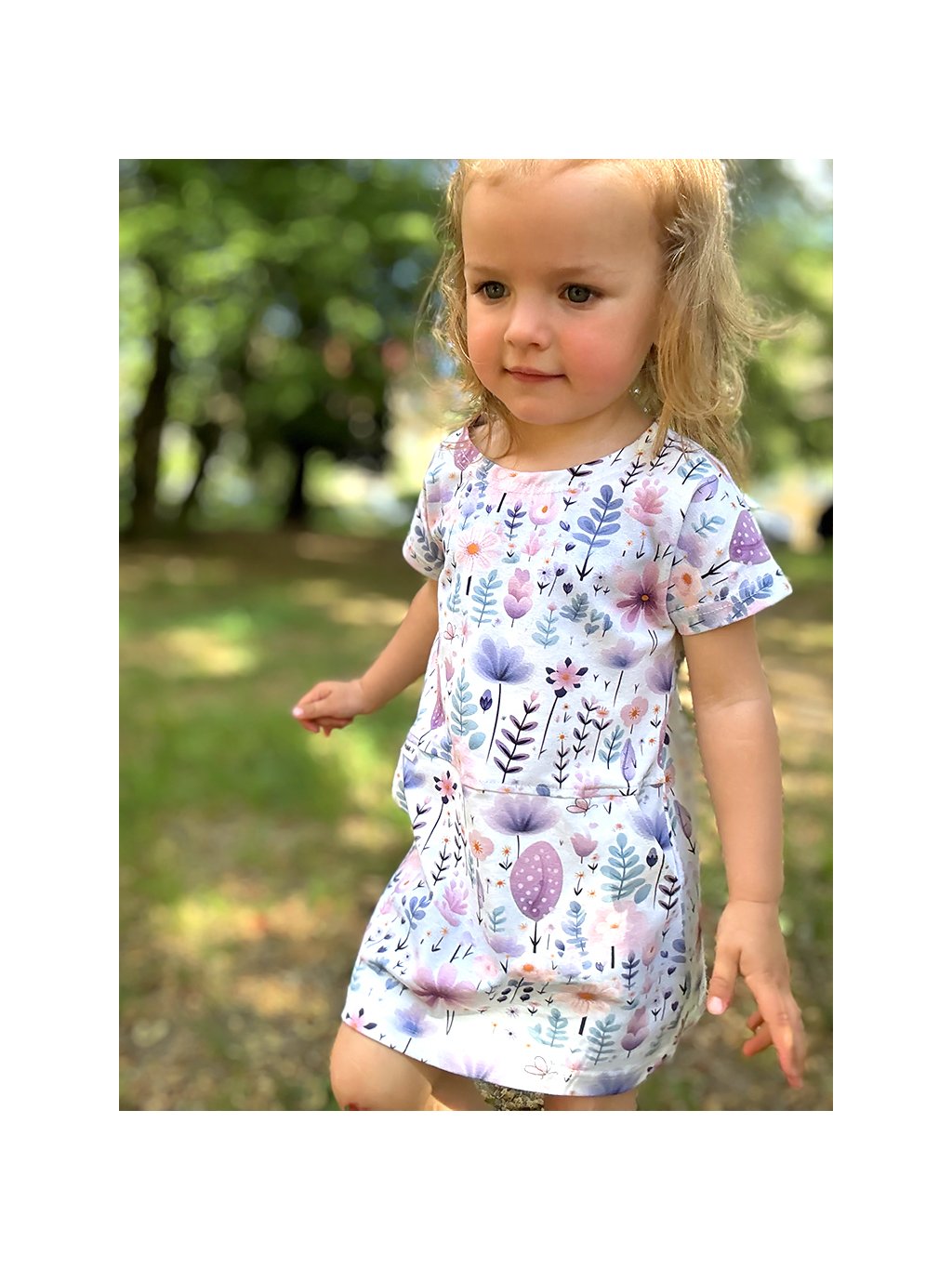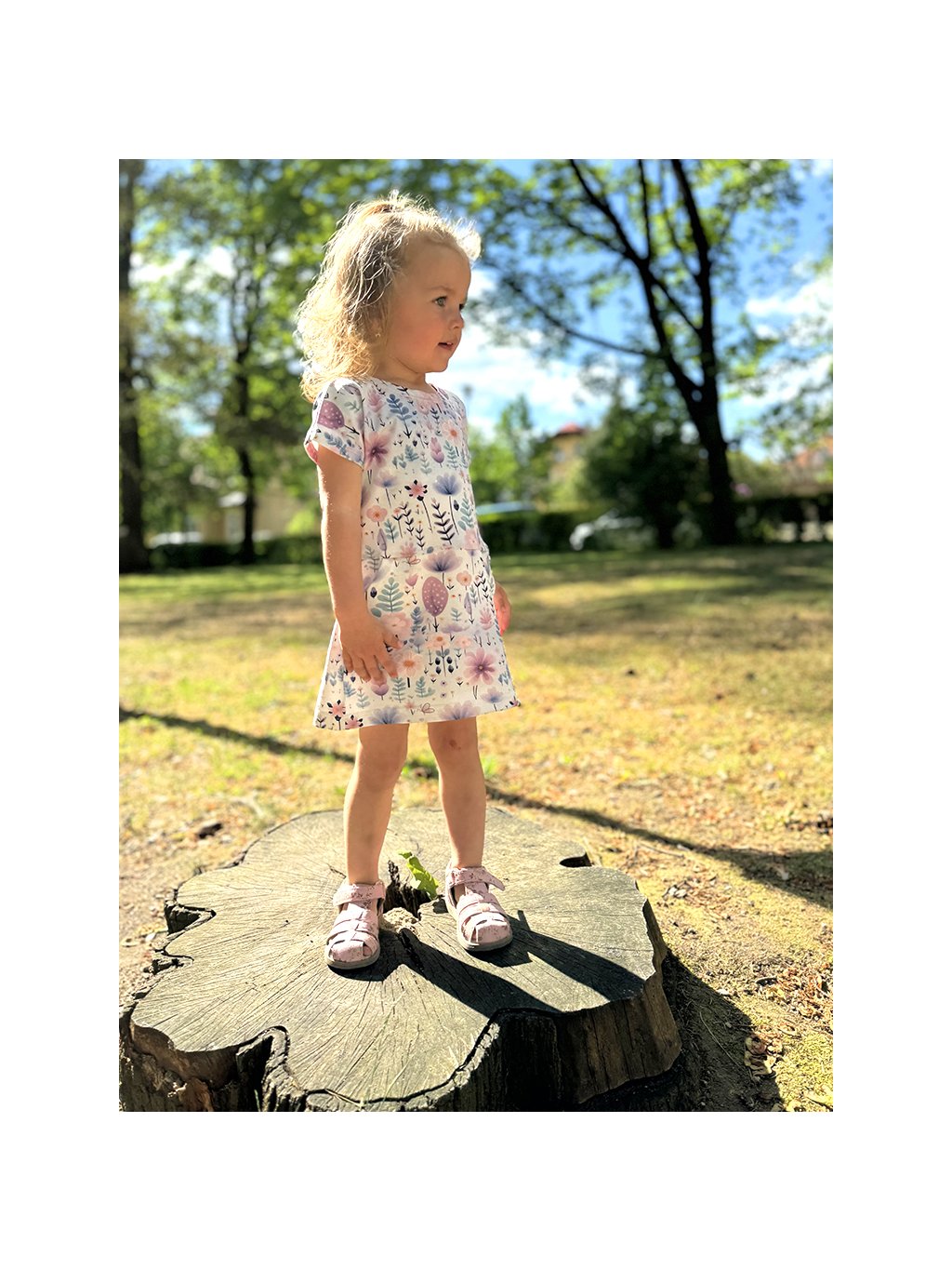 Dievčenské šaty sú nepostrádateľnou súčasťou šatníka každej malej princeznej. Šaty sme ušili z ľahkého, príjemného úpletu (95 % bavlna, 5 % elastan). Strih je áčkový, dole rozšírený a pohodlný pre všetky typy postáv. V páse majú šaty ozdobné prešitie, šaty majú tiež vrecká na najrôznejšie poklady.