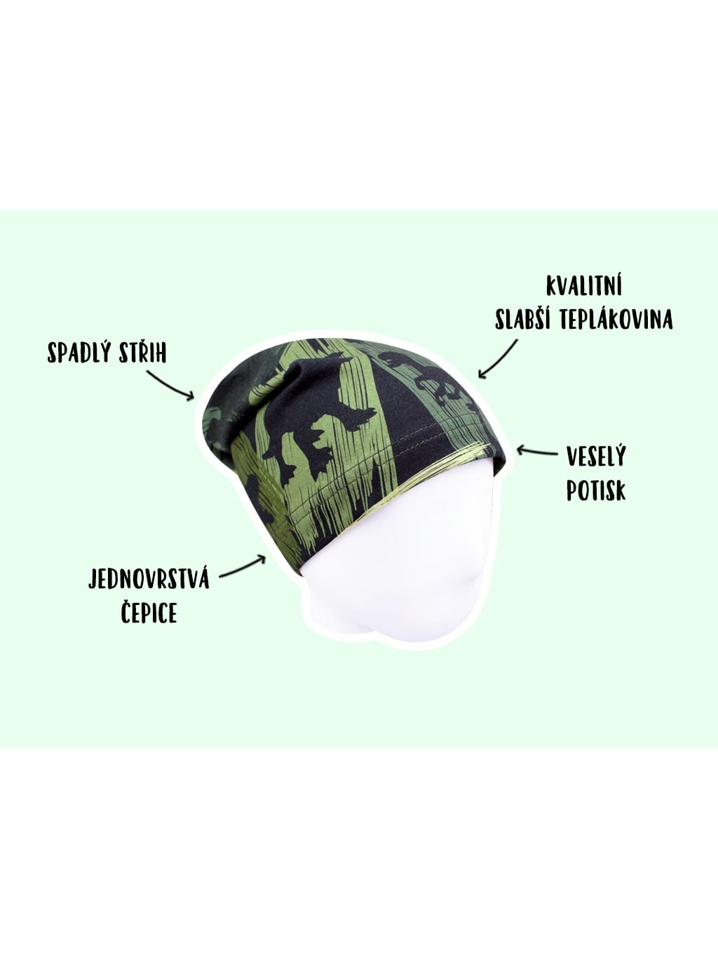 Jarní/podzimní čepice Khaki dinosauři DINOSAURY
