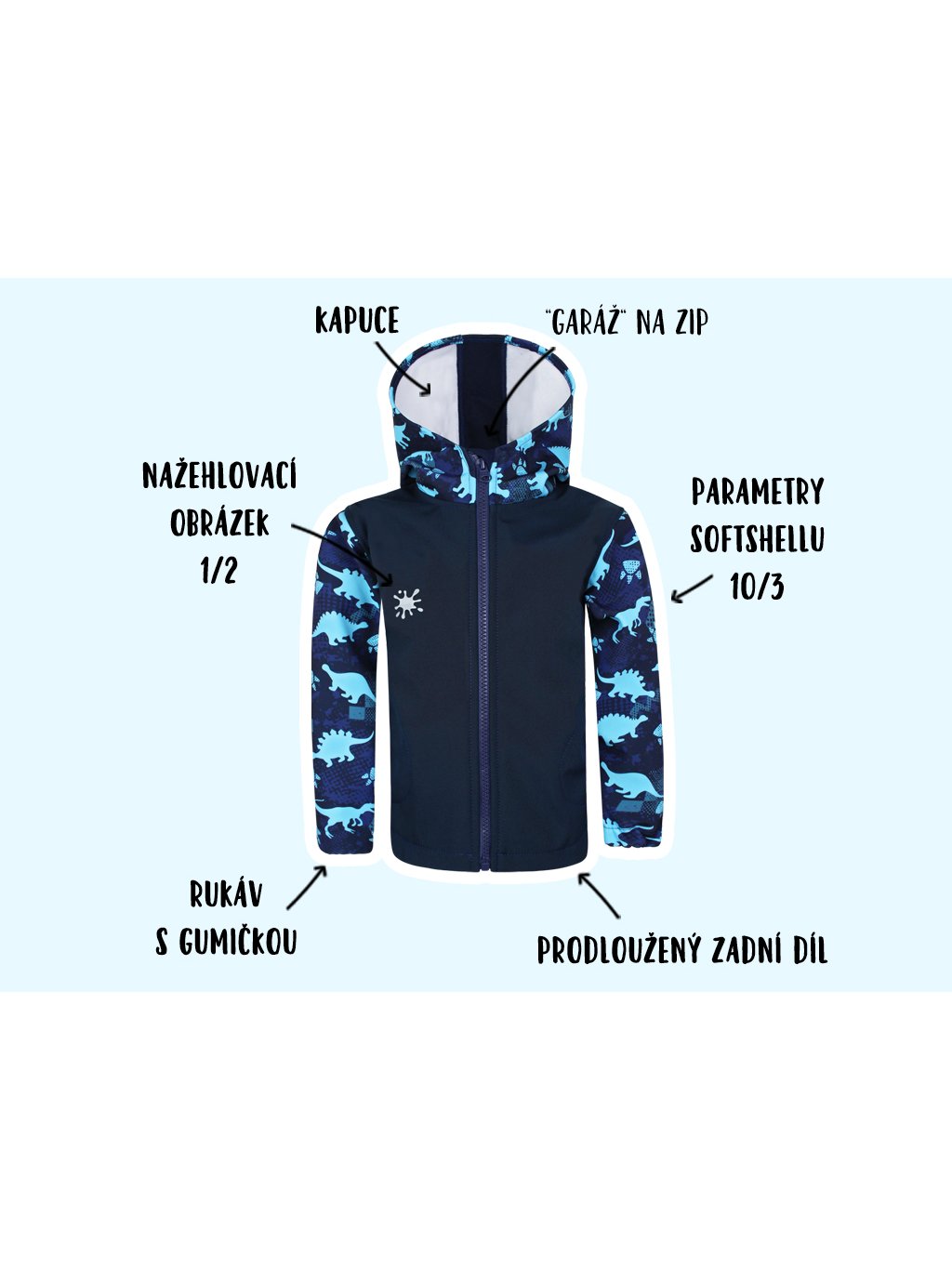 Softshellová bunda Dinosauři - modří (s fleecem) DINOSAURI