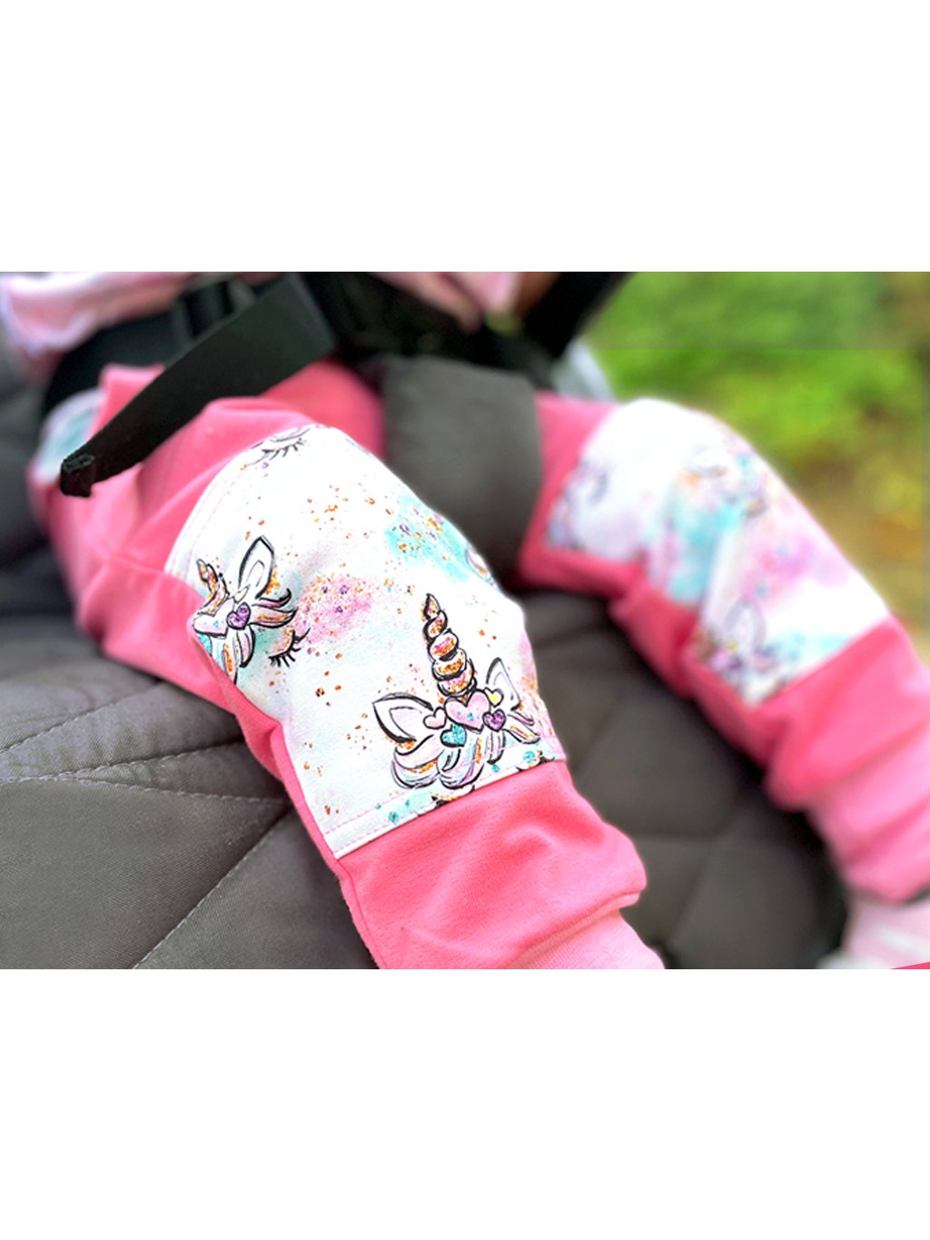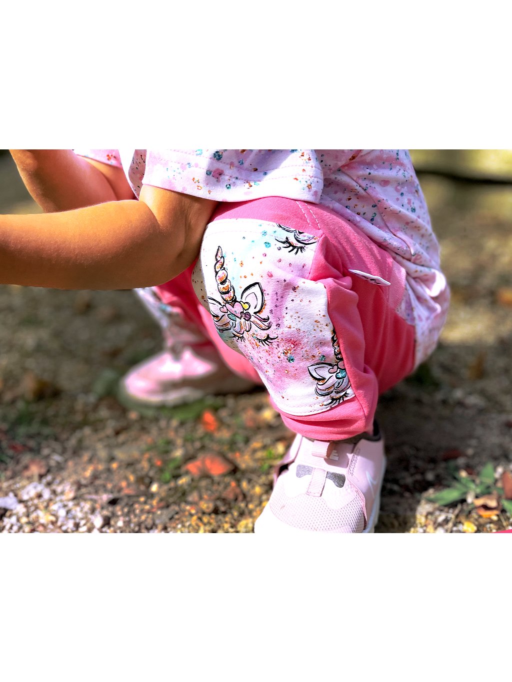 Popis dětských tepláků s dvojitými koleny Jednorožčí očička