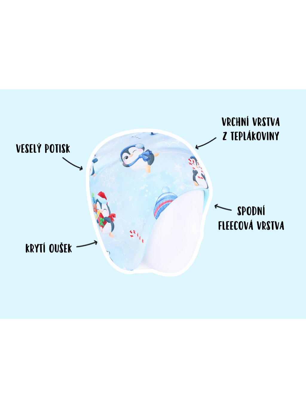 Zateplená čepice Tučňáčci na ledě TUČNIAKY